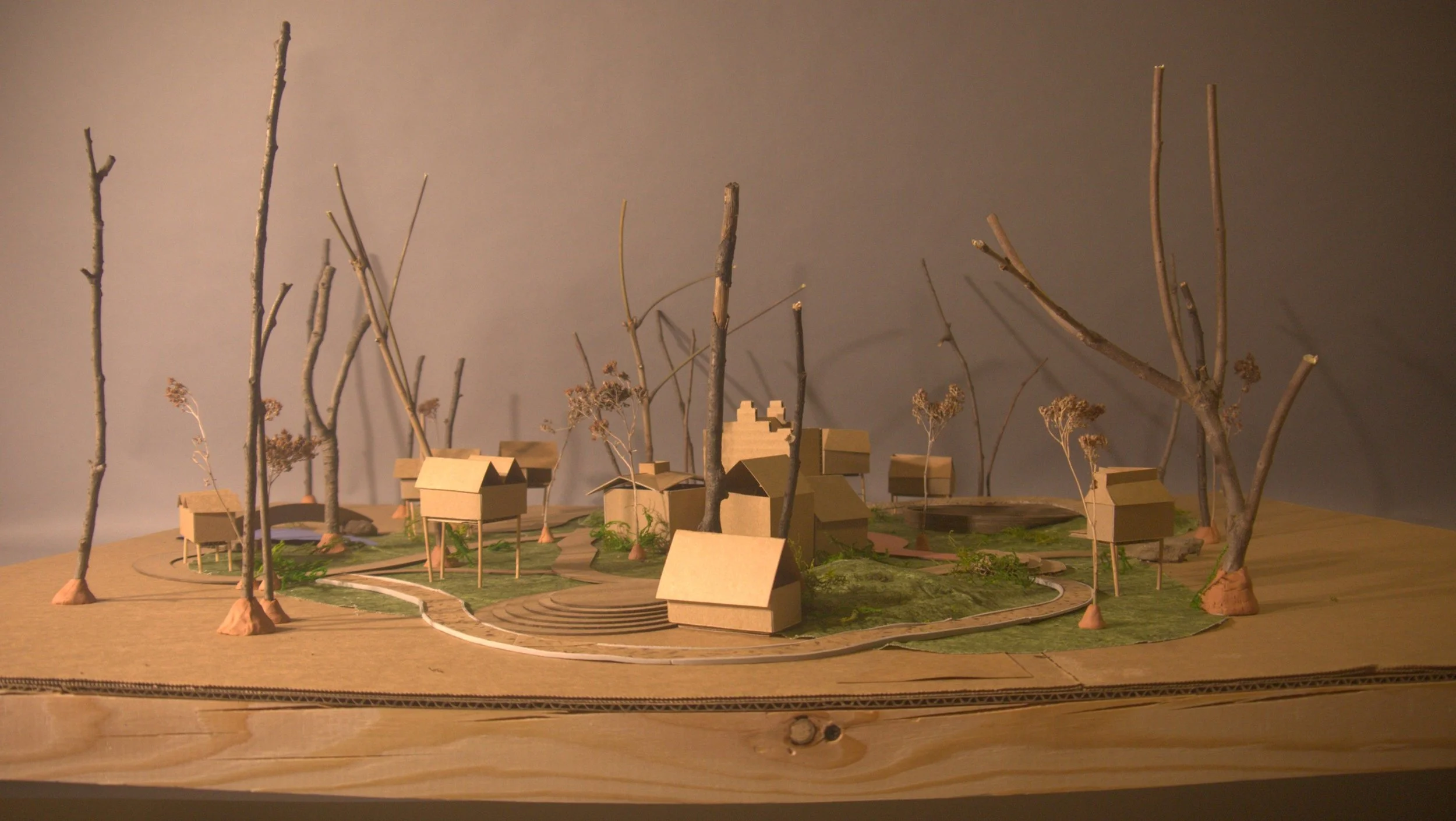 Timber Artist Village is a creative and meditative community center with seasonal housing for eight artists in residency at Art Omi, featuring elevated CLT treehouses, contemplative pathways, and a shared gathering space. Considering the needs of artists with different mediums, the variety of spaces foster an immersive environment where nature and play can support individual and collective artistic exploration.